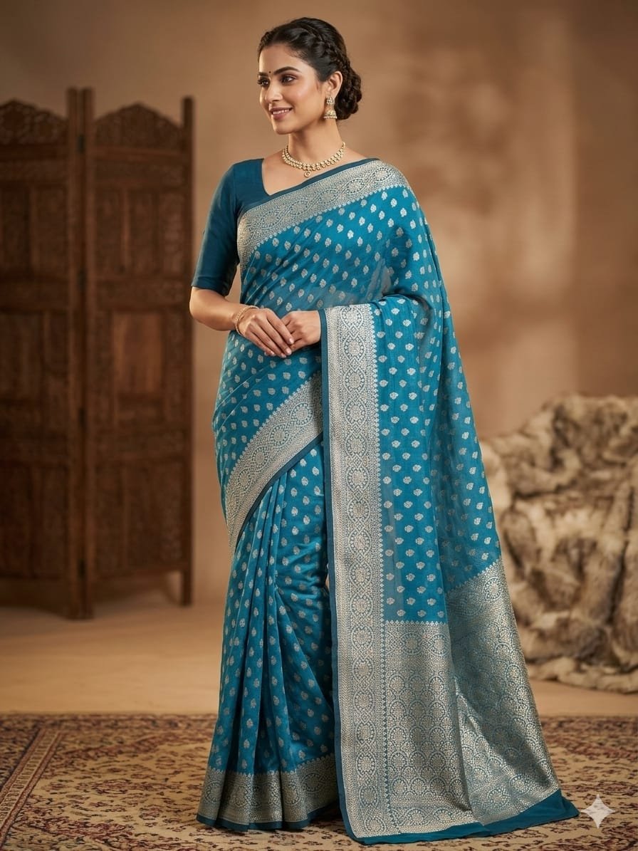 Beautiful saree with elegant design. The material feels premium and worth the price. Delivery was also quick.