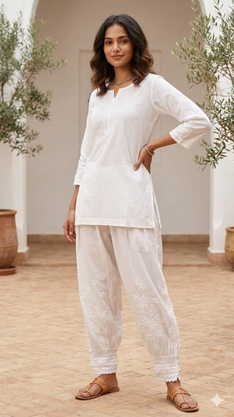 Light peach Muslim palazzo set featuring elegant chikankari embroidery, designed for a graceful and comfortable look. Crafted with soft, breathable fabric, it offers a perfect blend of tradition and style. Ideal for festive occasions, casual gatherings, and daily wear, this beautiful outfit adds charm, sophistication, and timeless elegance to your wardrobe. ✨