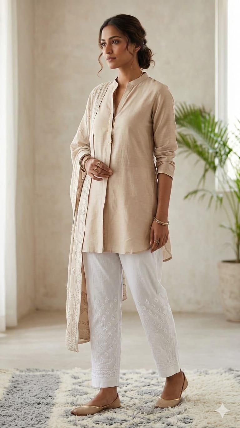 Light peach Muslim palazzo set featuring elegant chikankari embroidery, designed for a graceful and comfortable look. Crafted with soft, breathable fabric, it offers a perfect blend of tradition and style. Ideal for festive occasions, casual gatherings, and daily wear, this beautiful outfit adds charm, sophistication, and timeless elegance to your wardrobe. ✨