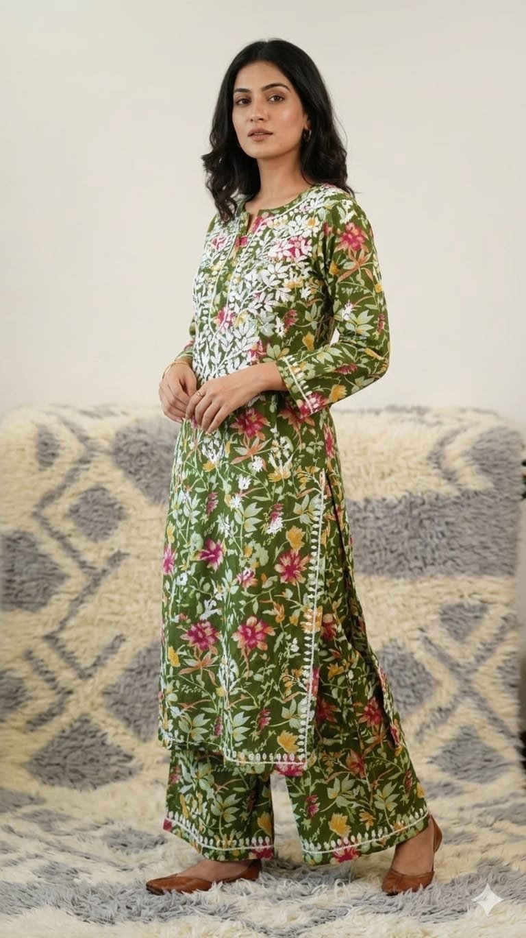 Light peach Muslim palazzo set featuring elegant chikankari embroidery, designed for a graceful and comfortable look. Crafted with soft, breathable fabric, it offers a perfect blend of tradition and style. Ideal for festive occasions, casual gatherings, and daily wear, this beautiful outfit adds charm, sophistication, and timeless elegance to your wardrobe. ✨