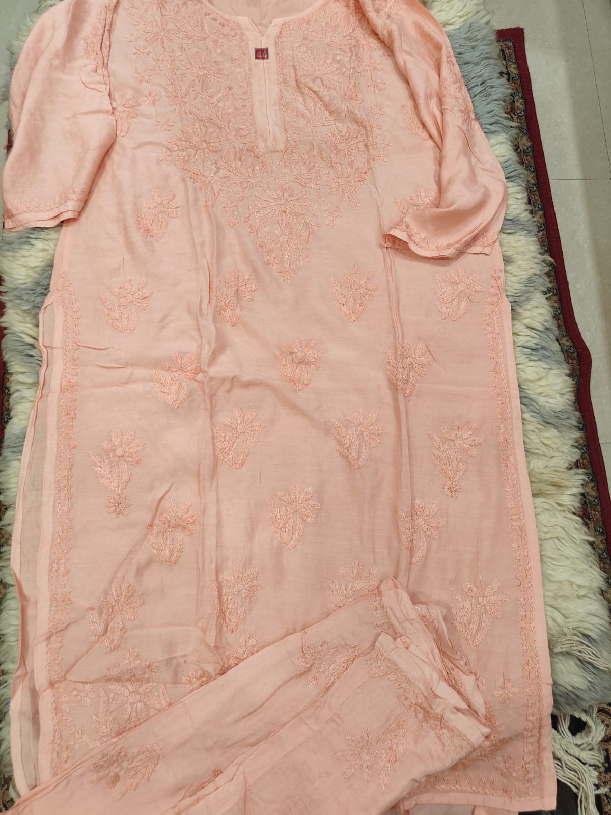 Be the first to review “Muslim plazzo set with beautiful chikankari light peach colour”