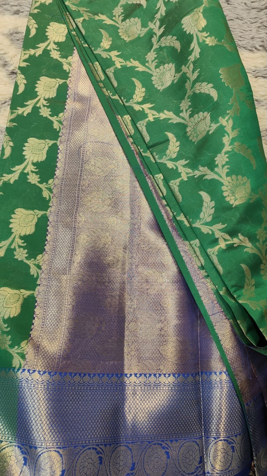 Perfect queen saree Banarasi looms present the most luxurious saree. Perfect for summer functions. A Banarasi silk saree with a classic booti jal pattern showcases timeless elegance and rich craftsmanship. The delicate all-over woven motifs create a graceful and luxurious look. Made from fine silk fabric, it offers a smooth drape and traditional charm, making it perfect for weddings, festive occasions, and cultural celebrations. ✨